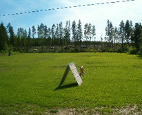 -Noin sadan metrin päästä ennen oikealle kaartuvaa mutkaa, käänny vasemmalle alas jossa kenttämme sijaitsee.